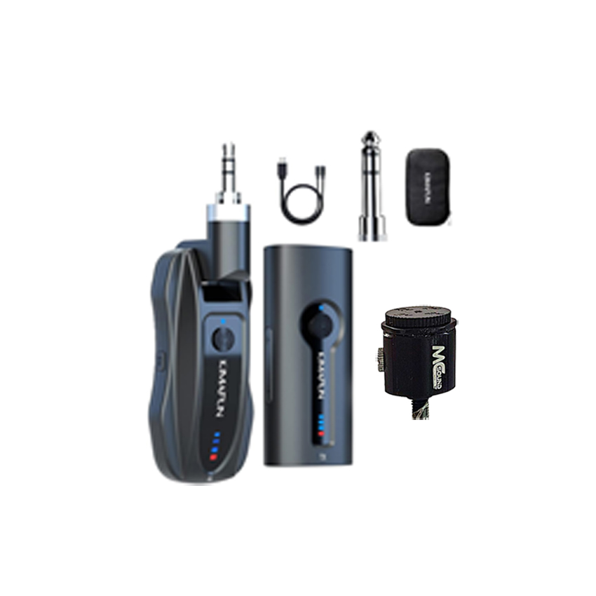 Otomatik olarak eşleşmesi için güç düğmesine uzun basın ve kullanmak için alıcıyı hoparlöre takın. Bluetooth'a gerek yok. Vericideki dahili mikrofon, enstruman sesini yönlendirebilir, ayrıca harici bir 3.5mm yaka mikrofonuna bağlanabilir.